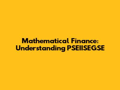 Mathematical Finance: Understanding PSEIISEGSE