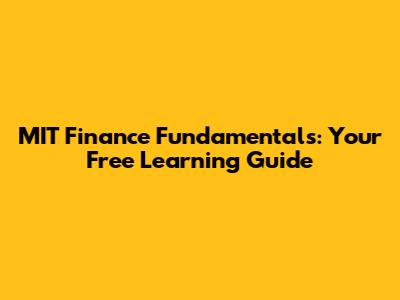 MIT Finance Fundamentals: Your Free Learning Guide