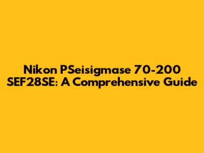 Nikon PSeisigmase 70-200 SEF28SE: A Comprehensive Guide