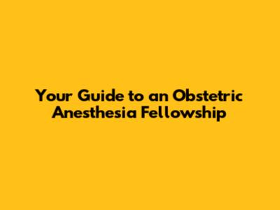 Obstetric Anesthesia Fellowship Guide