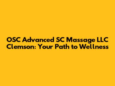 Hey guys! Are you searching for top-notch massage therapy in Clemson? Look no further! OSC Advanced SC Massage LLC is here to provide you with an exceptional experience that will leave you feeling refreshed, rejuvenated, and ready to conquer the world. We all know how stress and physical strain can take a toll on our bodies, and finding a reliable massage service is crucial for maintaining overall well-being. In this article, we’ll dive into everything you need to know about OSC Advanced SC Massage LLC, including their services, benefits, and why they're a standout choice in the Clemson area. Whether you're a student, athlete, or just someone seeking relaxation, understanding what OSC Advanced SC Massage offers will help you make an informed decision about your self-care routine. We'll explore the variety of massage techniques they use, the expertise of their therapists, and how their services can be tailored to meet your specific needs. So, stick around and discover how OSC Advanced SC Massage LLC can be your go-to destination for ultimate relaxation and therapeutic relief.