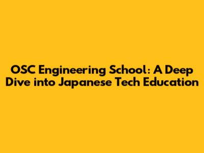 OSC Engineering School: A Deep Dive Into Japanese Tech Education