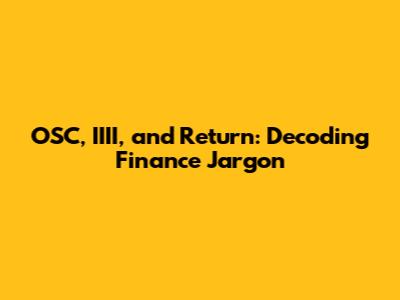 OSC, IIII, And Return: Decoding Finance Jargon