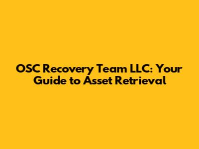 OSC Recovery Team: Your Guide To Asset Retrieval