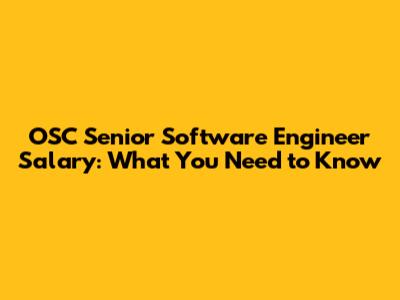 OSC Senior Software Engineer Salary: What You Need To Know