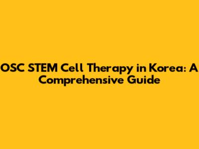 OSC STEM Cell Therapy In Korea: A Comprehensive Guide