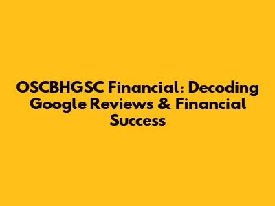 OSCBHGSC Financial: Decoding Google Reviews & Financial Success