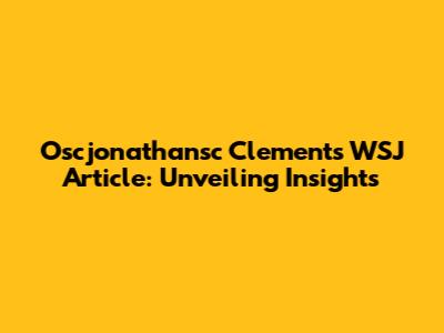 Decoding the Oscjonathansc Clements WSJ Article: A Comprehensive Overview