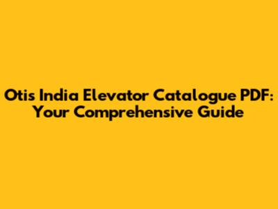 Otis India Elevator Catalogue: Your PDF Guide