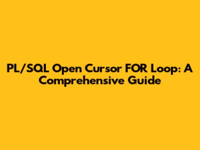 PL/SQL Open Cursor FOR Loop: A Comprehensive Guide