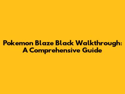 Pokemon Blaze Black Walkthrough: A Comprehensive Guide