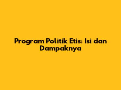 Program Politik Etis: Isi Dan Dampaknya