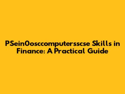 PSein0osccomputersscse Skills In Finance: A Practical Guide