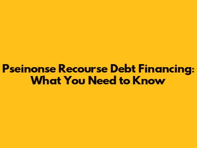 Pseinonse Recourse Debt Financing: What You Need To Know