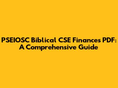PSEIOSC Biblical CSE Finances PDF: A Comprehensive Guide