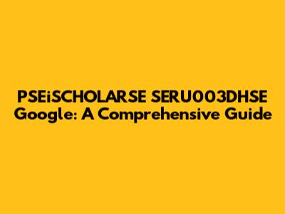 PSEiSCHOLARSE SERU003DHSE Google: A Comprehensive Guide