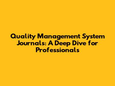 Quality Management System Journals Explained