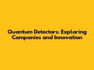 Quantum Detectors: Exploring Companies And Innovation
