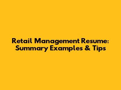 Retail Management Resume: Summary Examples & Tips
