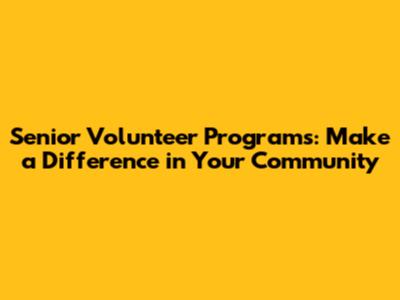 Senior Volunteer Programs: Make A Difference In Your Community