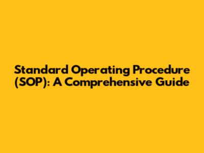 Standard Operating Procedure (SOP): A Comprehensive Guide