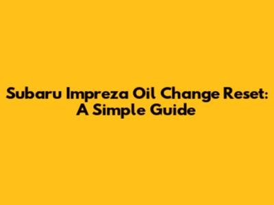 Subaru Impreza Oil Reset: A Simple Guide