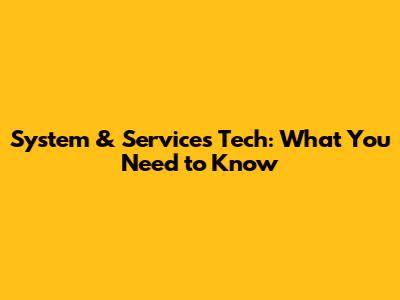 System & Services Tech: What You Need To Know