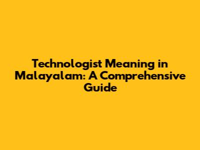 Technologist Meaning In Malayalam: A Comprehensive Guide