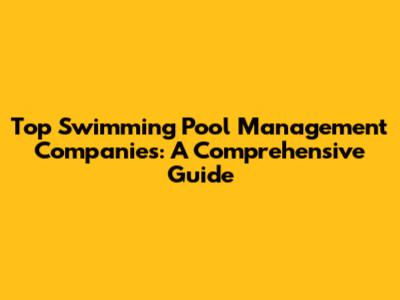 Top Swimming Pool Management Companies: A Comprehensive Guide