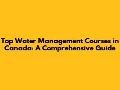 Top Water Management Courses In Canada