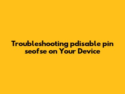 Troubleshooting Pdisable Pin Seofse On Your Device