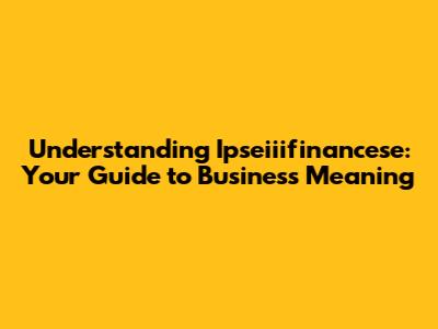 Understanding Ipseiiifinancese: Your Guide To Business Meaning