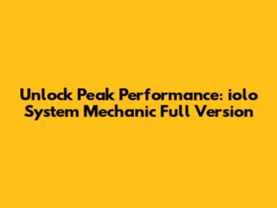 Unlock Peak Performance: Iolo System Mechanic Full Version