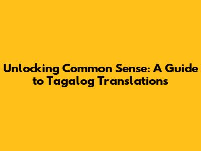 Unlocking Common Sense: A Guide To Tagalog Translations