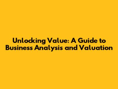 Unlocking Value: A Guide To Business Analysis And Valuation