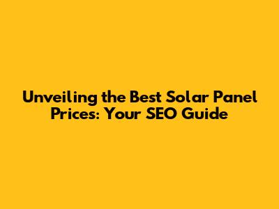 Unveiling The Best Solar Panel Prices: Your SEO Guide