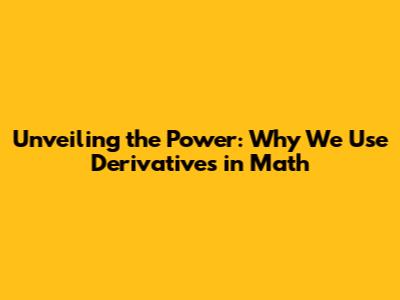 Unveiling The Power: Why We Use Derivatives In Math