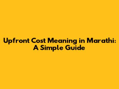 Upfront Cost Meaning In Marathi: A Simple Guide