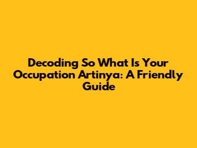 What Does So What Is Your Occupation Artinya Mean?