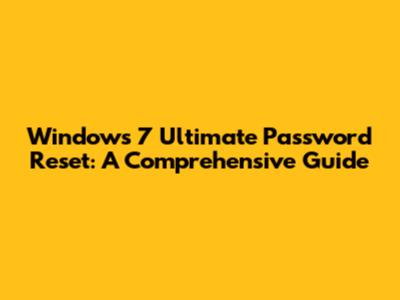 Windows 7 Ultimate Password Reset: A Comprehensive Guide
